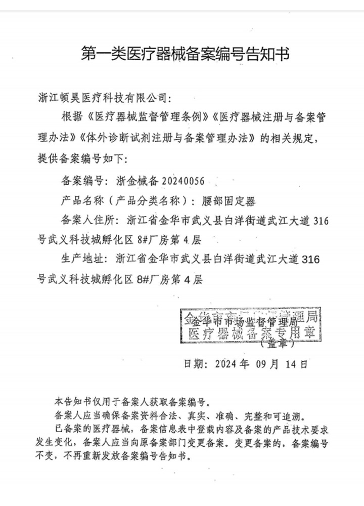 浙江頓昊醫(yī)療有限公司位于浙江溫泉之都——武義,是生產(chǎn)頸椎儀等醫(yī)療科技用品的專業(yè)廠家,其中現(xiàn)在生產(chǎn)的腰、頸椎儀成為國際國內(nèi)眾多客戶首選產(chǎn)品。在經(jīng)營中公司實行嚴(yán)格的質(zhì)量管理,為使各類產(chǎn)品領(lǐng)先國內(nèi)外市場 ,公司擁有先進設(shè)備及工藝;技術(shù)力量雄厚;檢測設(shè)備齊全;質(zhì)保體系完善。產(chǎn)品出口世界各國,深受國內(nèi)外客戶歡迎。 企業(yè)以質(zhì)量第一,信譽至上為經(jīng)營原則。以務(wù)實創(chuàng)新高效向上的企業(yè)精神,在企業(yè)發(fā)展的同時,竭誠希望與海內(nèi)外客戶建立合作伙伴關(guān)系,共創(chuàng)繁榮!